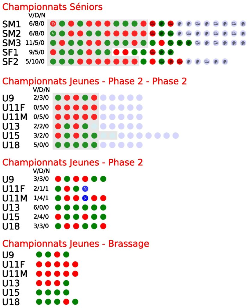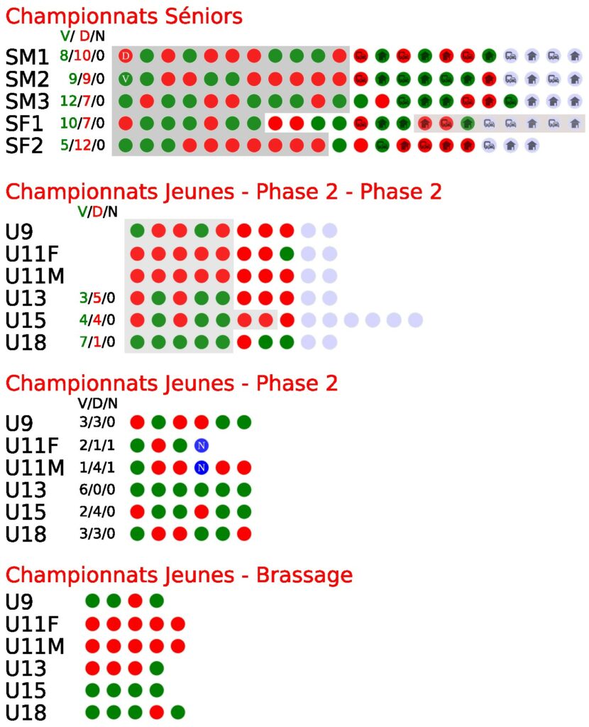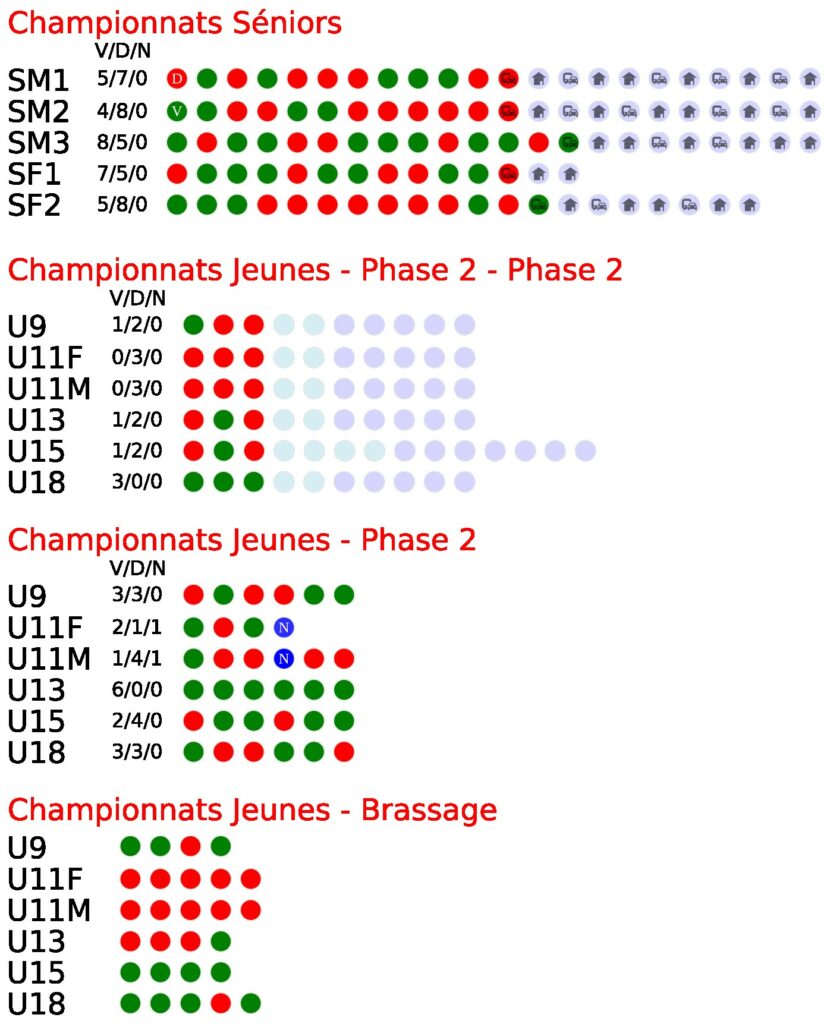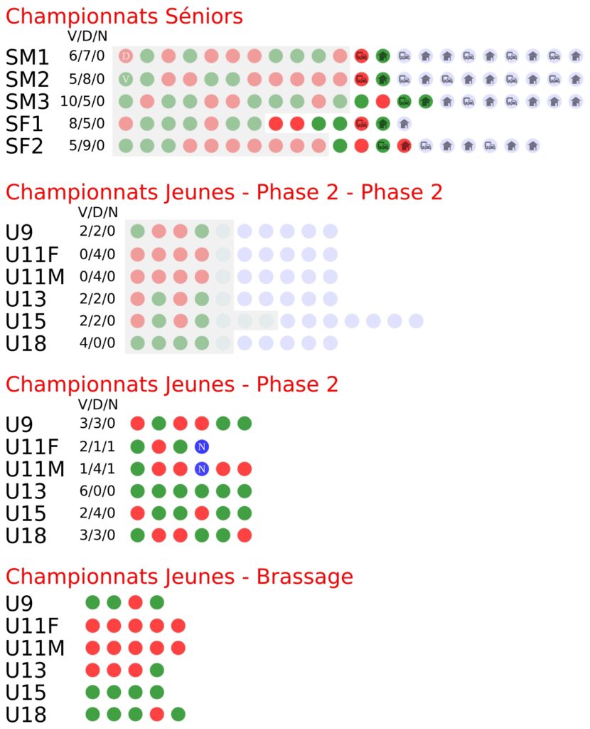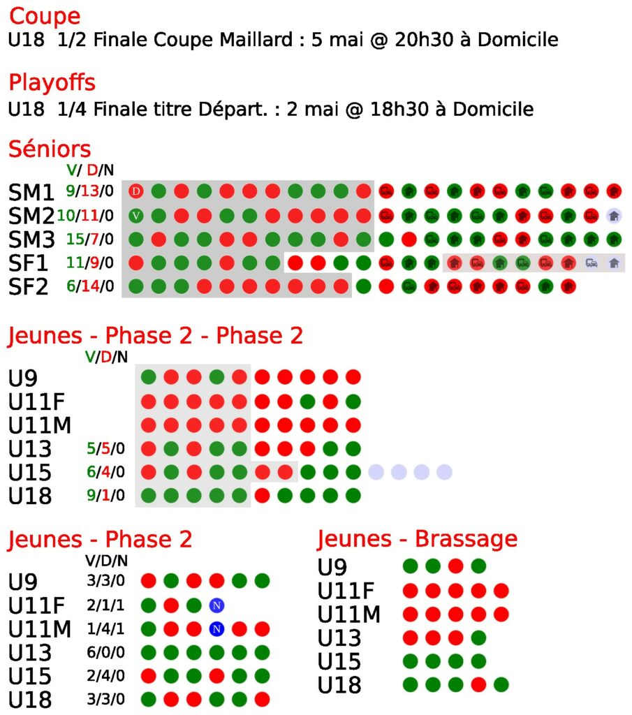 Les calendriers des matchs des équipes sont online. Rdv sur les onglets matchs (à domicile, à l’extérieur), ou sur la page de chaque équipe.