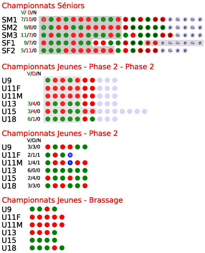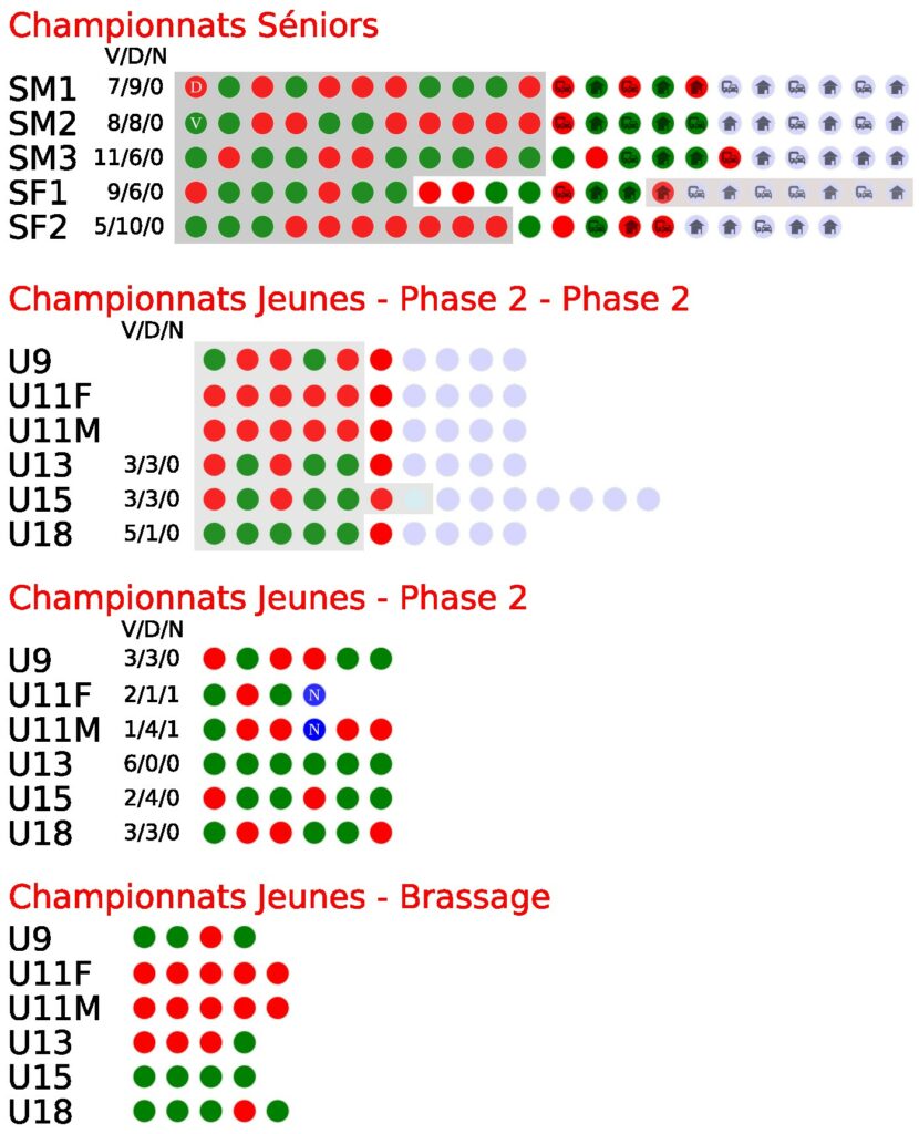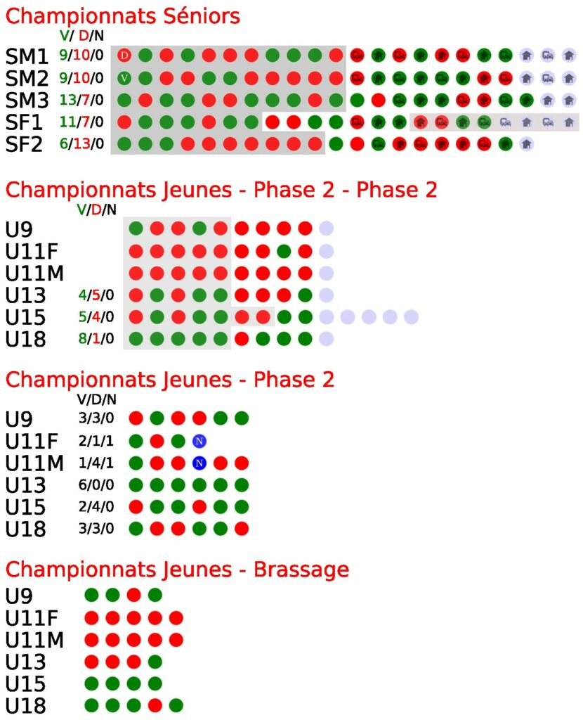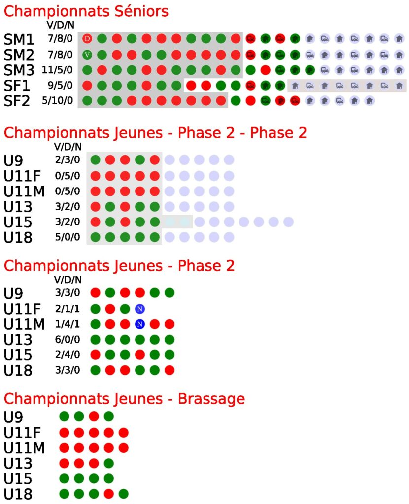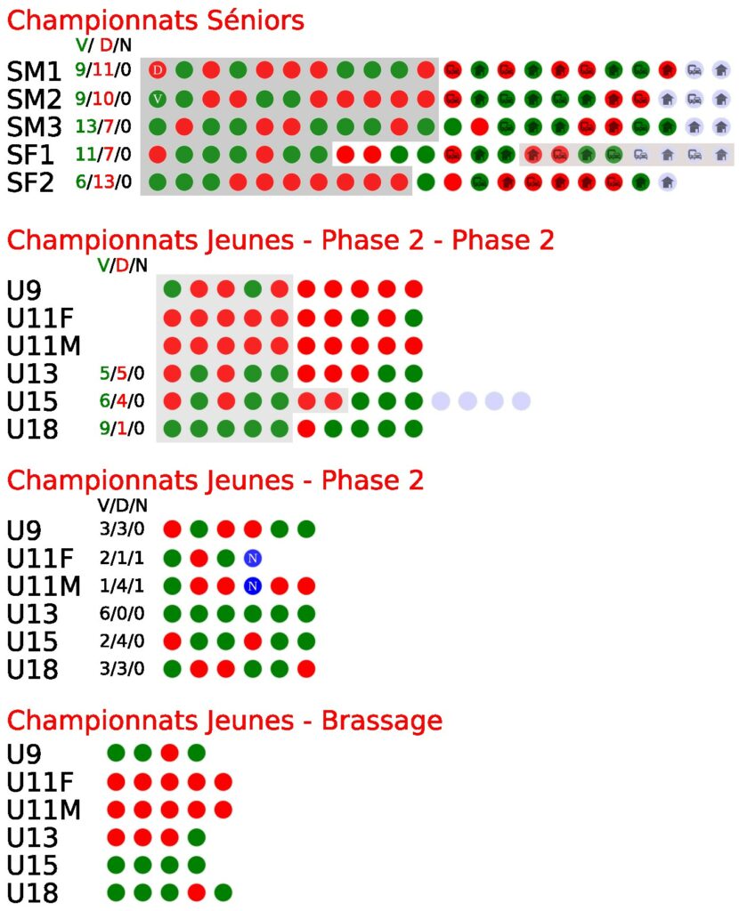 Les calendriers des matchs des équipes sont online. Rdv sur les onglets matchs (à domicile, à l’extérieur), ou sur la page de chaque équipe.